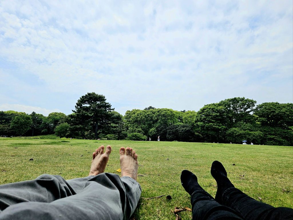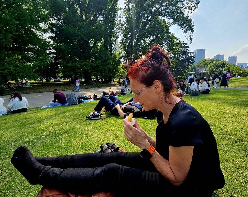 Heute war nicht nur Sonntag, sondern auch Midori no Hi, der Tag des Grüns, oder wie wir ihn auch getauft haben „Green Day 🤘. In den Parks ist der Eintritt frei und viele Familien nutzen das für ein Picknick. Frei nach dem Motto „Bist du in Rom, dann mach es wie die Römer!“ haben auch wir den heutigen Tag bei strahlendem Wetter im Park verbracht. Getroffen haben wir dabei fast nur Japaner und keine Touristen- ein sehr entspannender Tag!